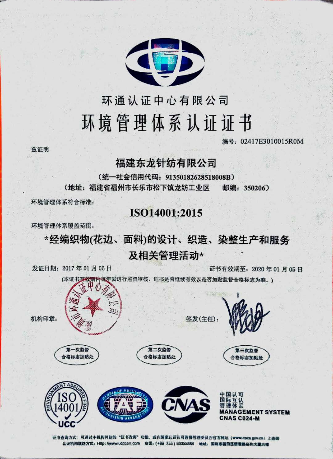 ISO14001環(huán)境管理體系認(rèn)證證書(shū)/2018-09-04